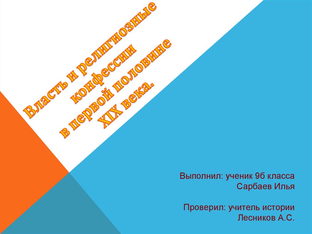 Власть и религиозные конфессии в первой половине 19 века