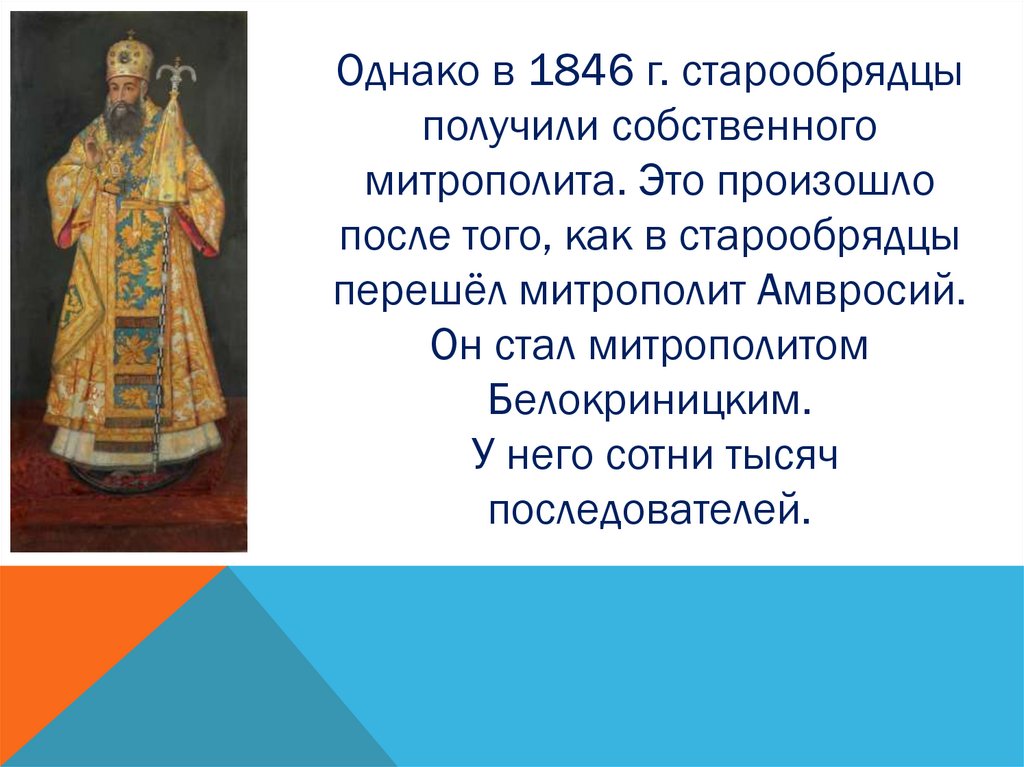 Однако в 1846 г. старообрядцыполучили собственного