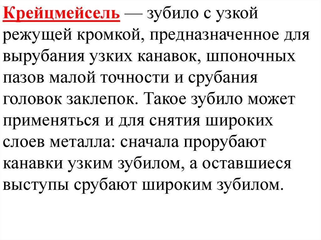 Крейцмейсель — зубило с узкойрежущей кромкой, предназначенное для