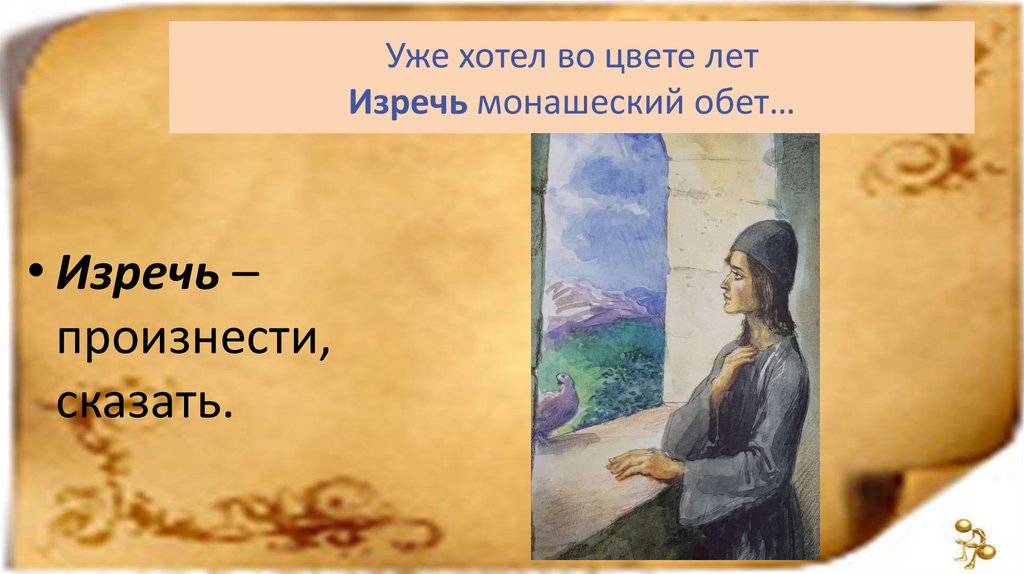 Уже хотел во цвете летИзречь монашеский обет…