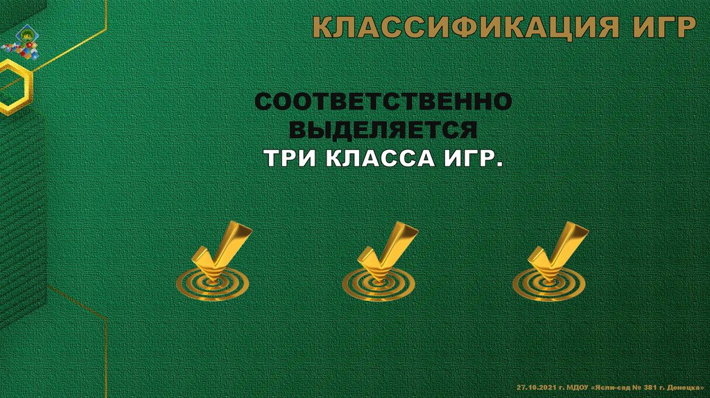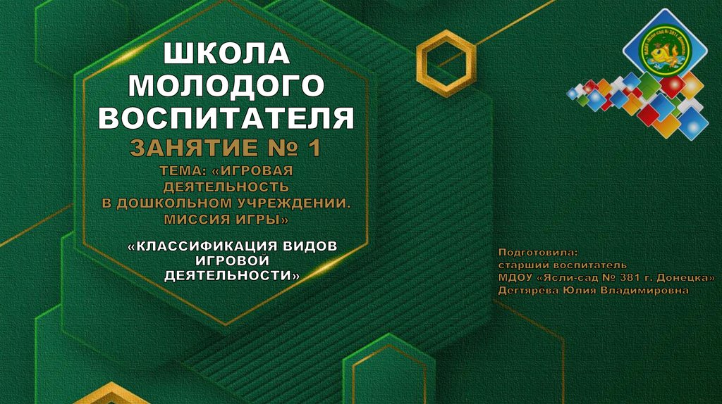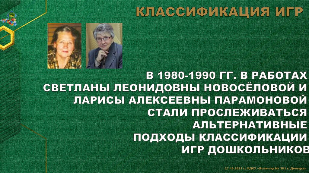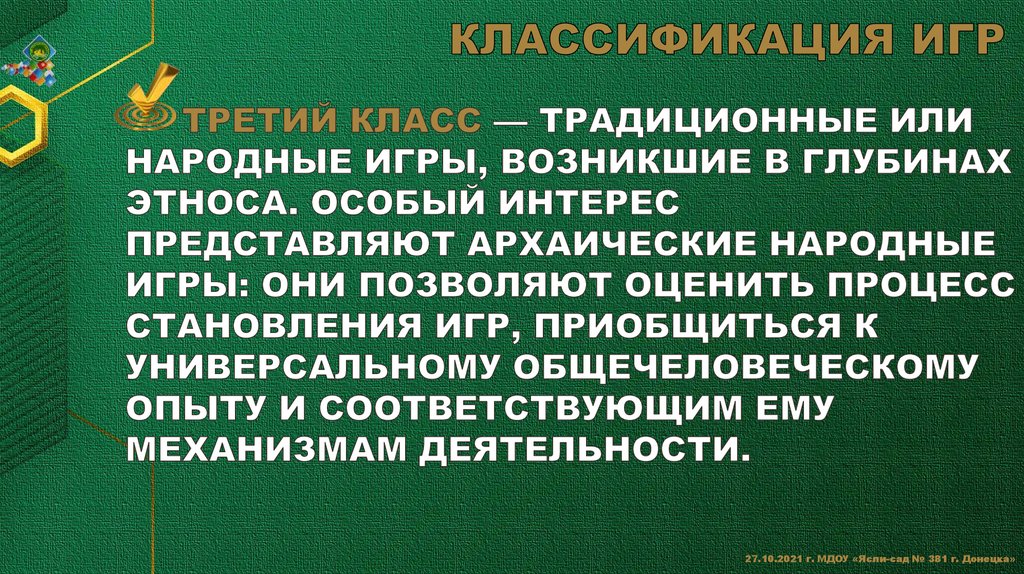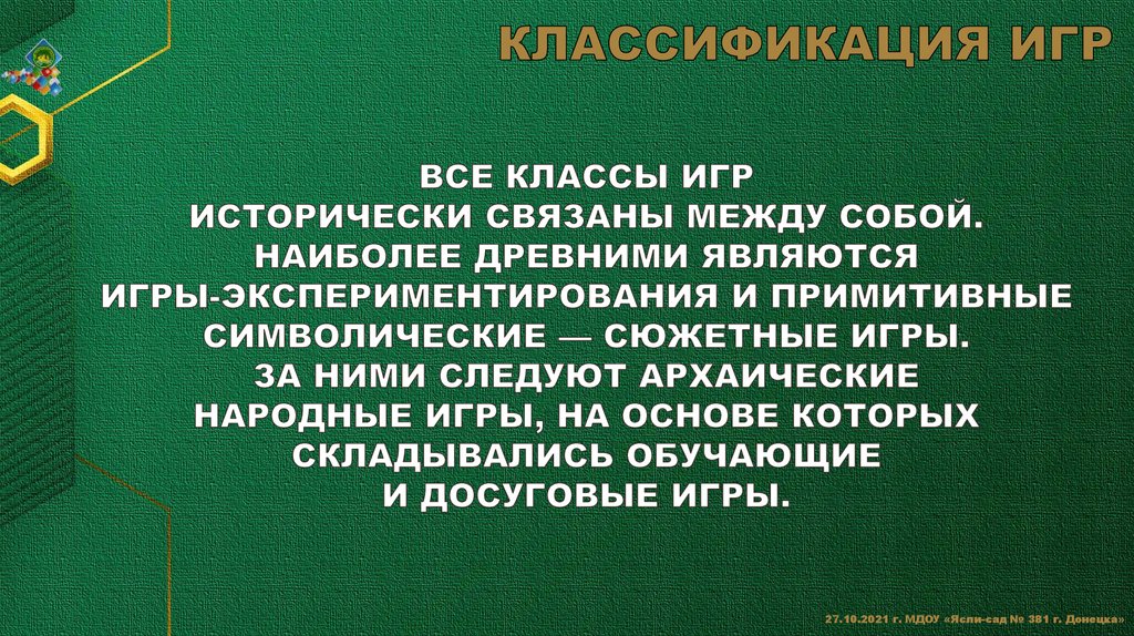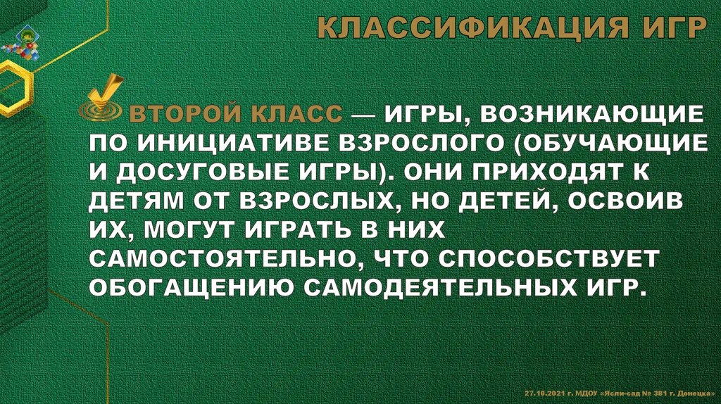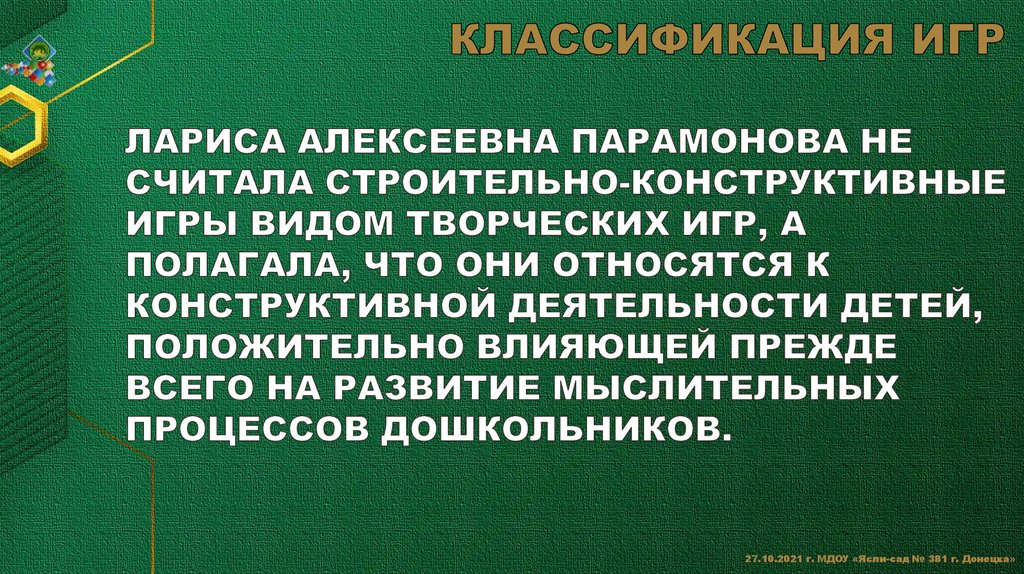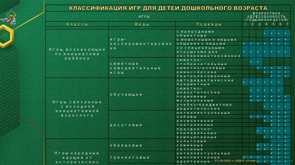 Игровая деятельность в дошкольном учреждении. Миссия игры. Классификация видов игровой деятельности
