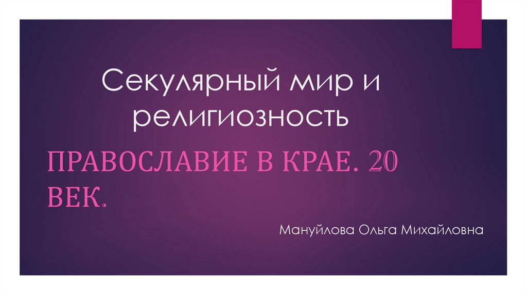 Секулярный мир и религиозность. Православие в крае. 20 век