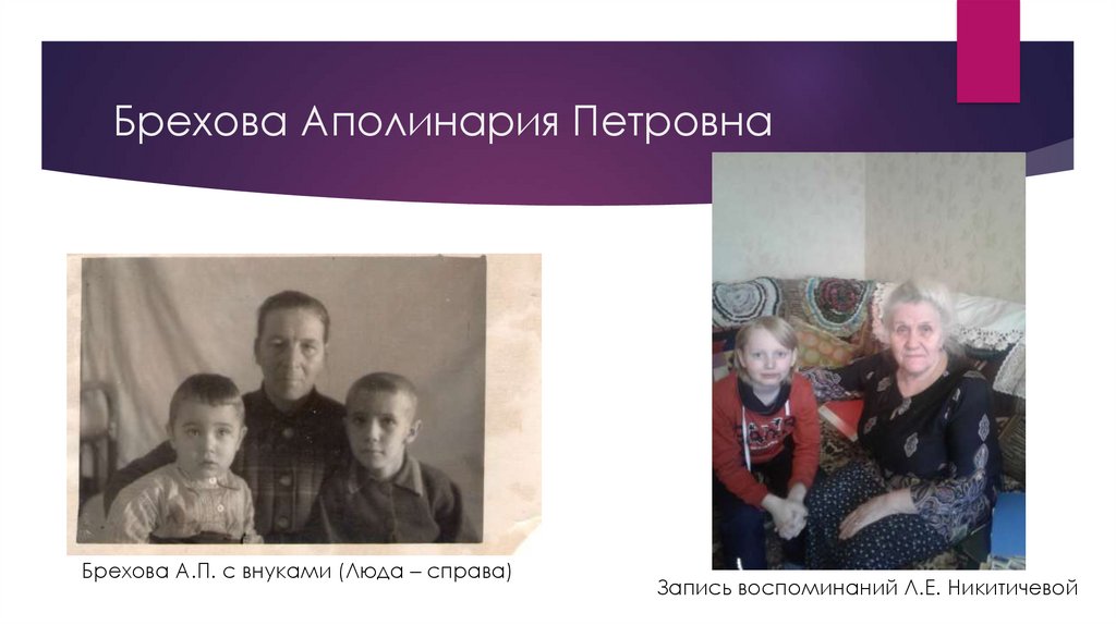Брехова Аполинария ПетровнаБрехова А.П. с внуками (Люда – справа)