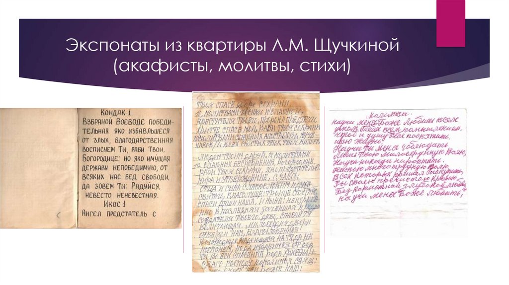 Экспонаты из квартиры Л.М. Щучкиной(акафисты, молитвы, стихи)