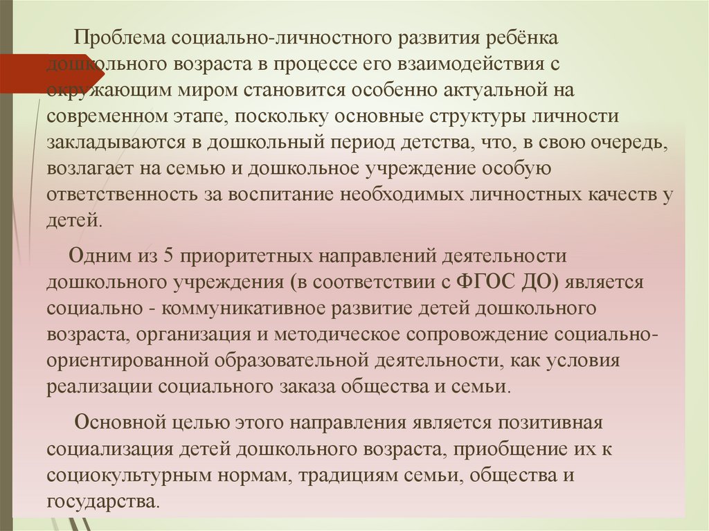 Проблема социально-личностного развития ребёнкадошкольного возраста в процессе его взаимодействия с