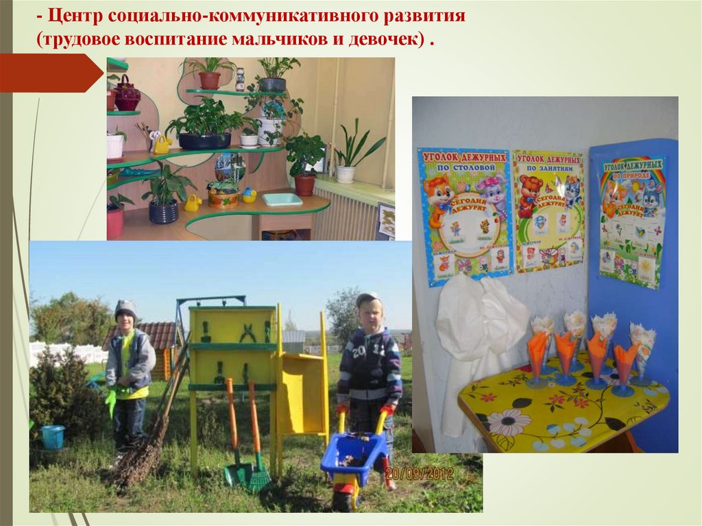 - Центр социально-коммуникативного развития(трудовое воспитание мальчиков и девочек) .