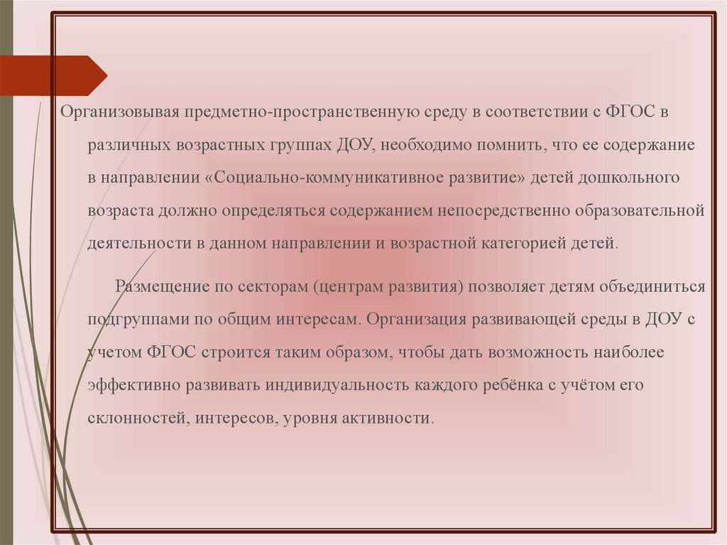 Организация предметно-пространственной среды по социально-коммуникативному развитию в группе с учетом ФГОС