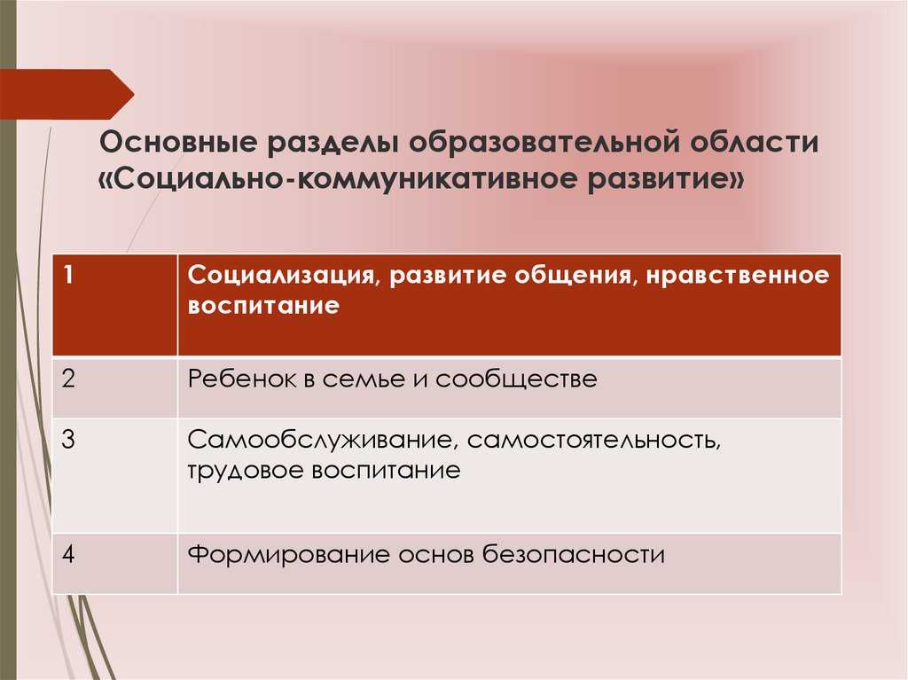 Основные разделы образовательной области«Социально-коммуникативное развитие»