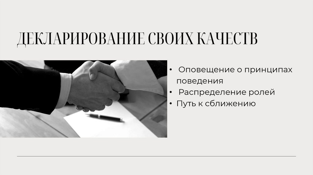 ДЕКЛАРИРОВАНИЕ СВОИХ КАЧЕСТВ• Оповещение о принципах