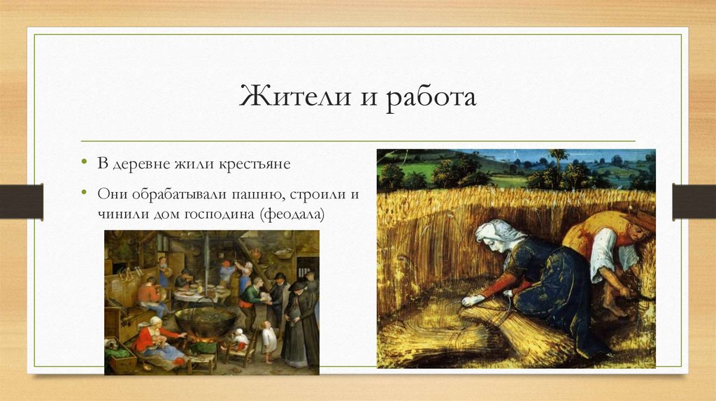 Жители и работа• В деревне жили крестьяне