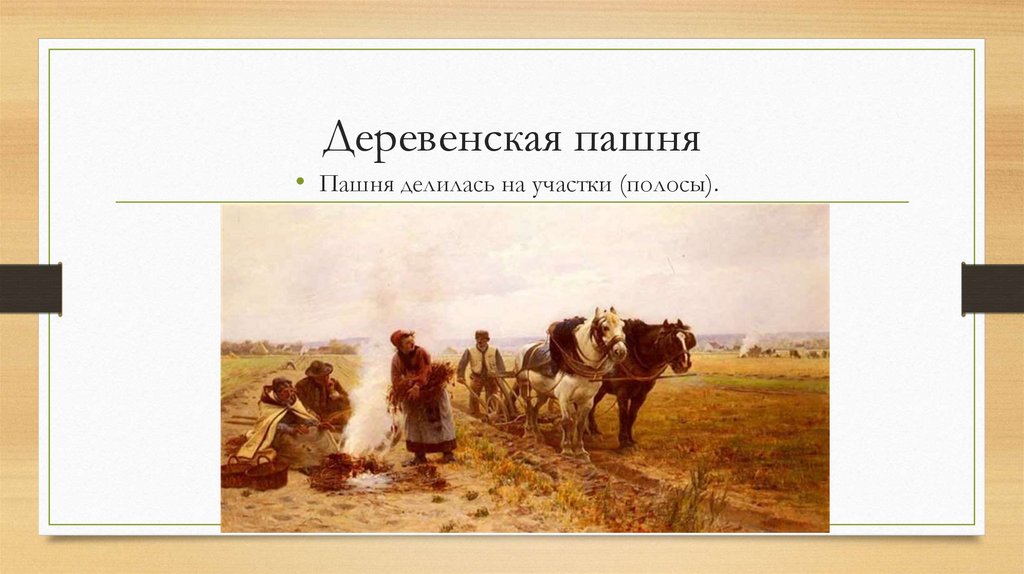 Деревенская пашня• Пашня делилась на участки (полосы).