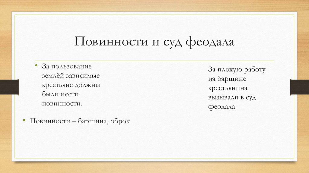 Повинности и суд феодала• За пользование