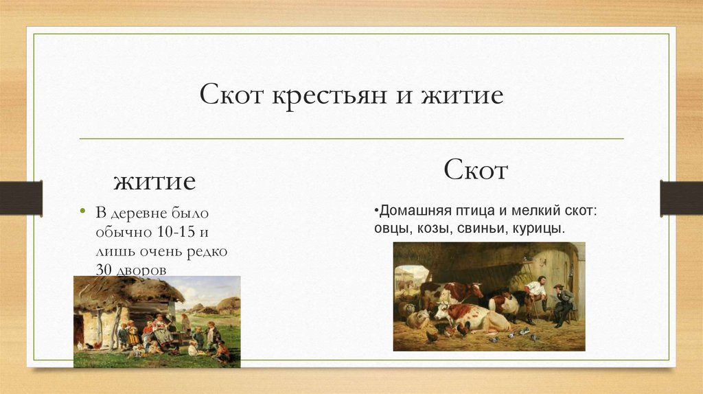 Скот крестьян и житиежитие