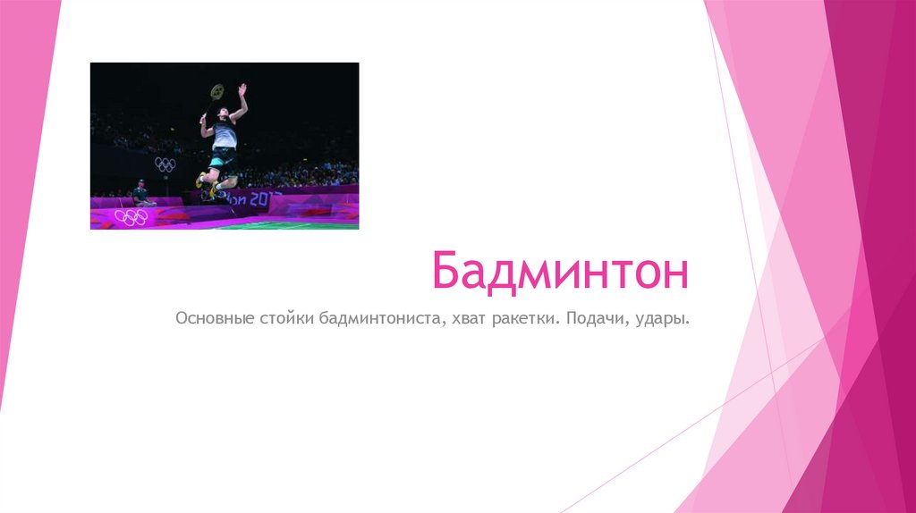 БадминтонОсновные стойки бадминтониста, хват ракетки. Подачи, удары.