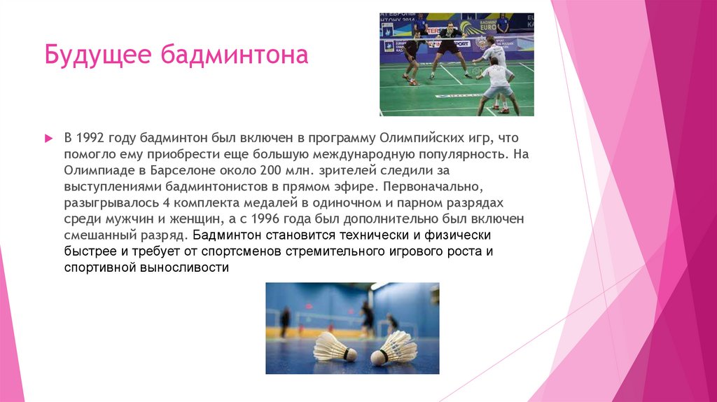Будущее бадминтонаВ 1992 году бадминтон был включен в программу Олимпийских игр, что