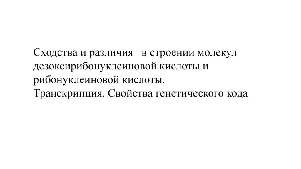 Сходства и различия в строении молекул дезоксирибонуклеиновой кислоты и рибонуклеиновой кислоты. Транскрипция