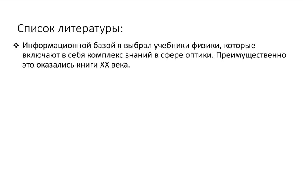 Список литературы:Информационной базой я выбрал учебники физики, которые
