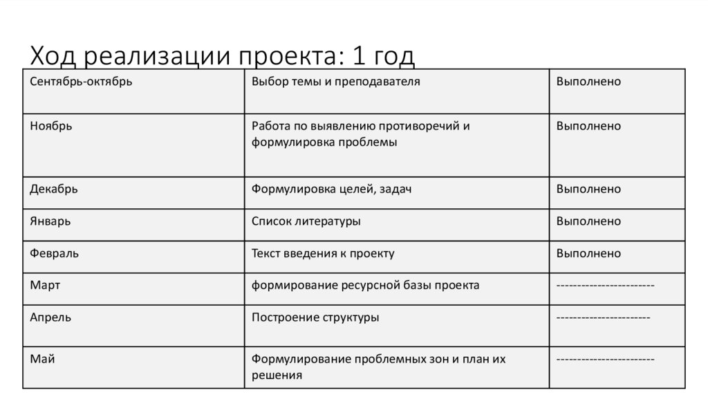 Ход реализации проекта: 1 годСентябрь-октябрь