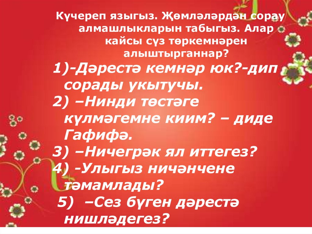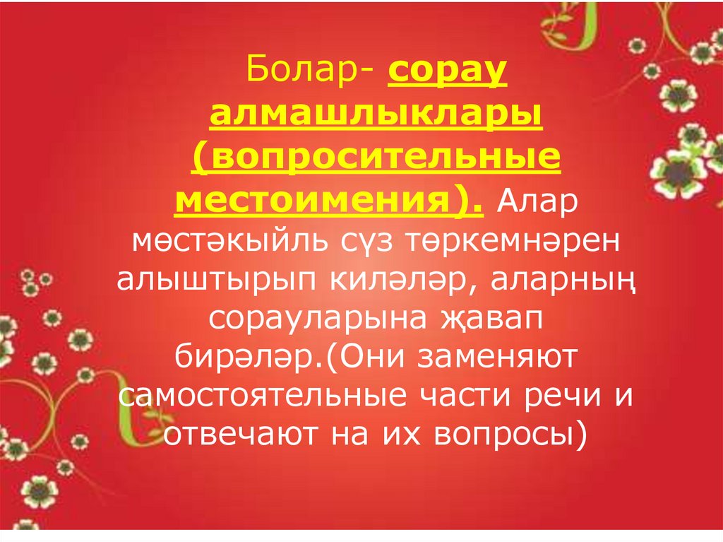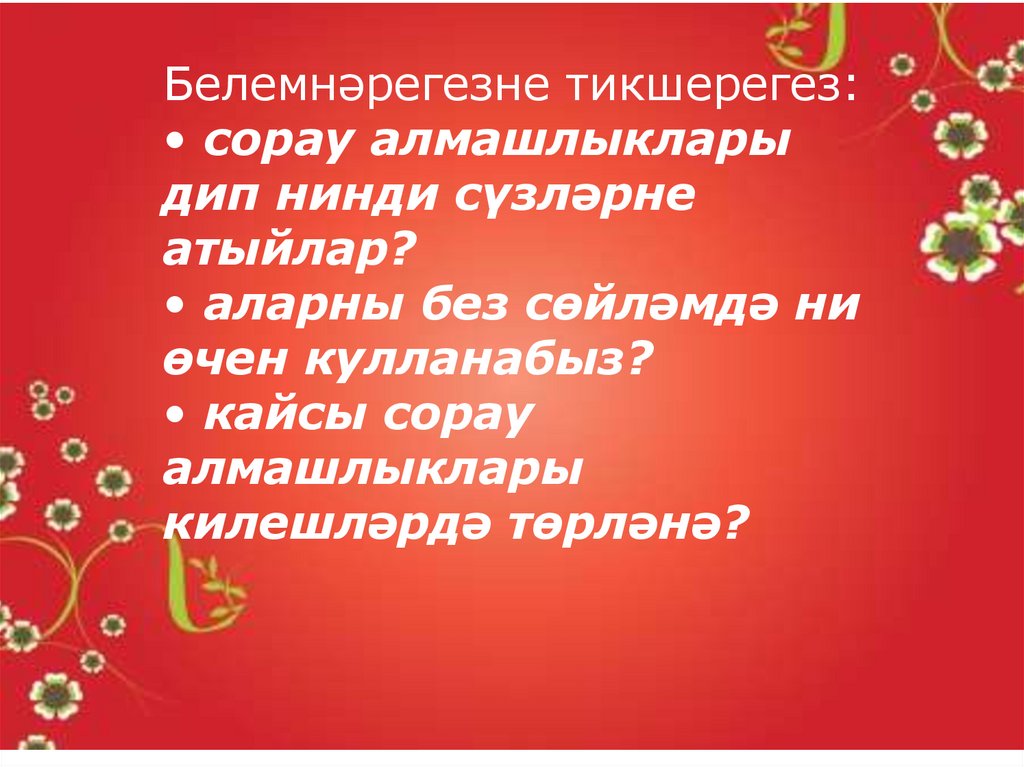 Белемнәрегезне тикшерегез:• сорау алмашлыклары