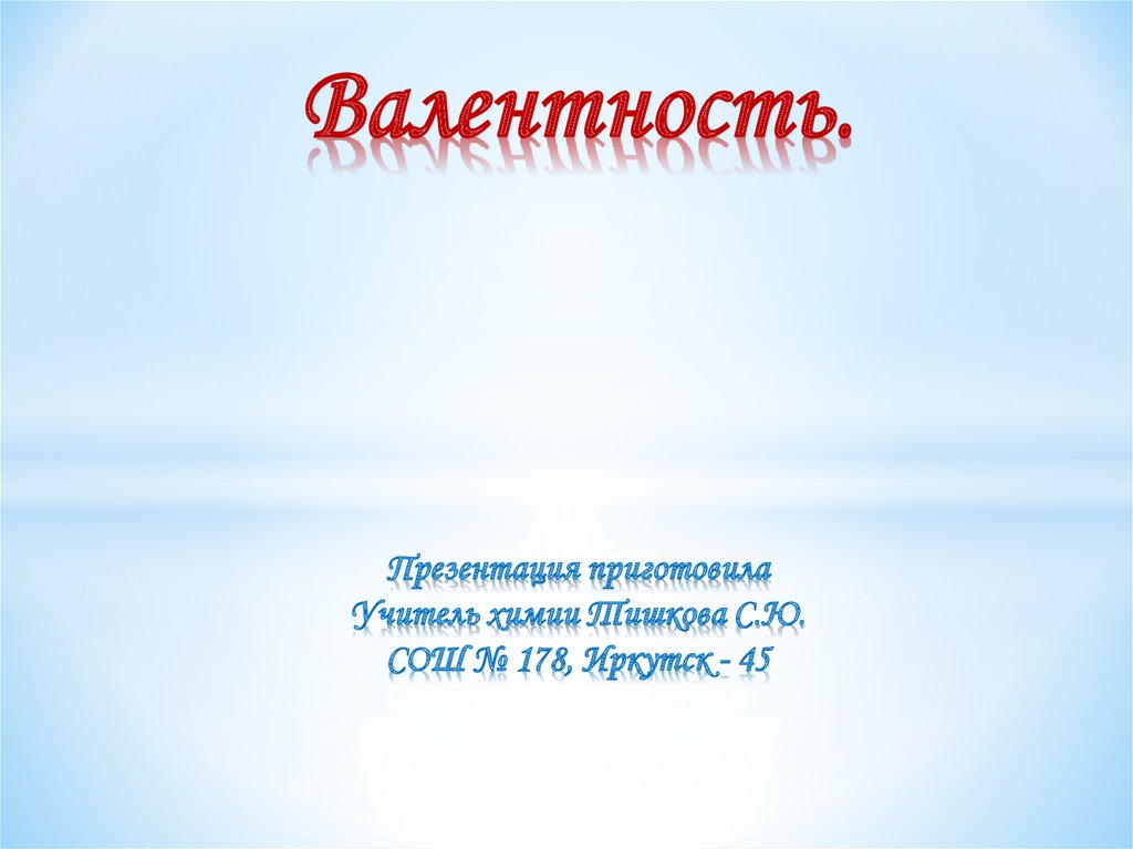 1. Валентность. Презентация приготовила Учитель химии Тишкова С.Ю. СОШ № 178, Иркутск - 45