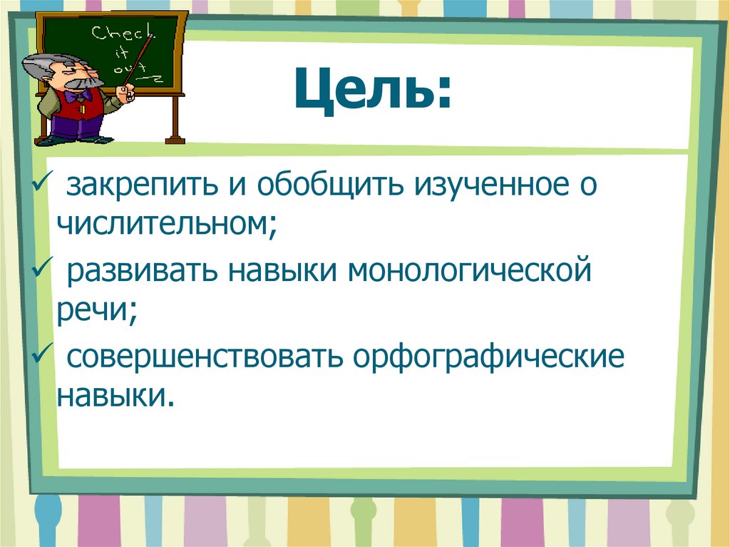 Цель:закрепить и обобщить изученное о