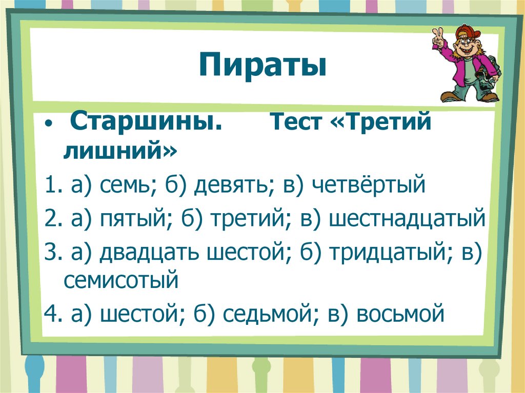 1. а) семь; б) девять; в) четвёртый
