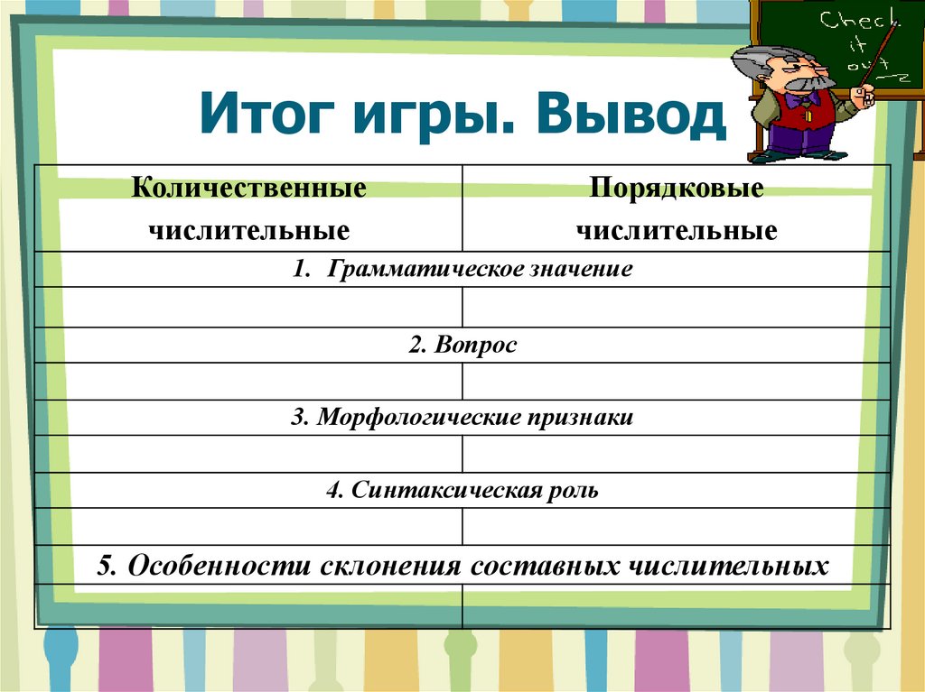 Итог игры. ВыводКоличественные