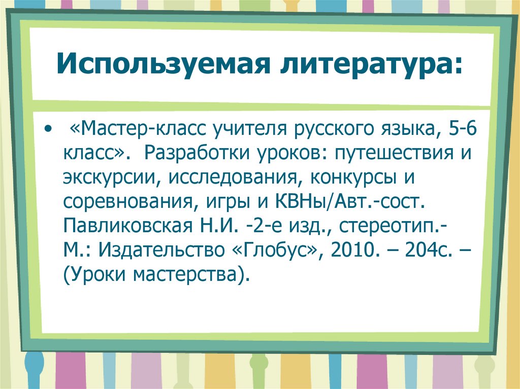 Используемая литература:• «Мастер-класс учителя русского языка, 5-6