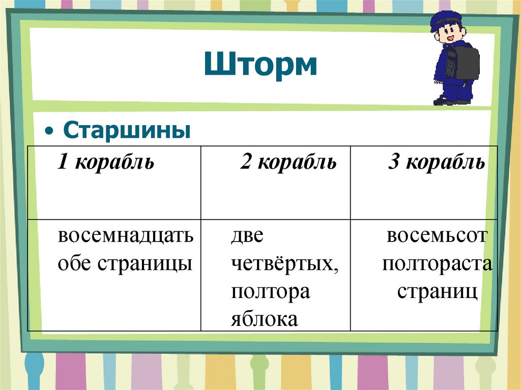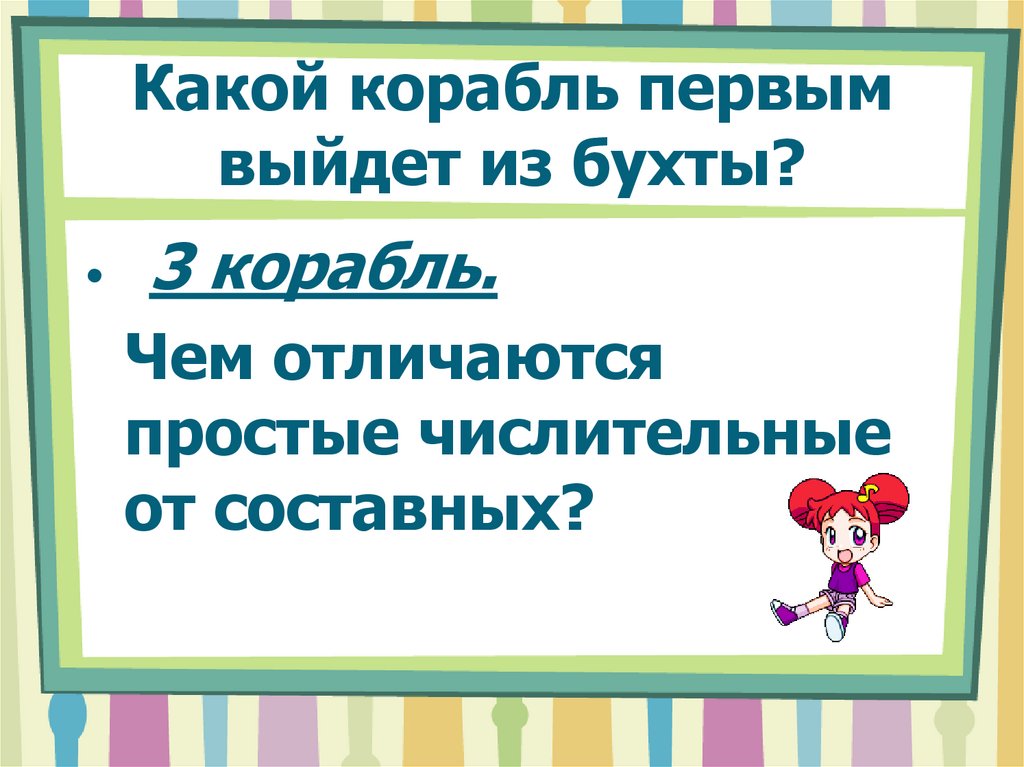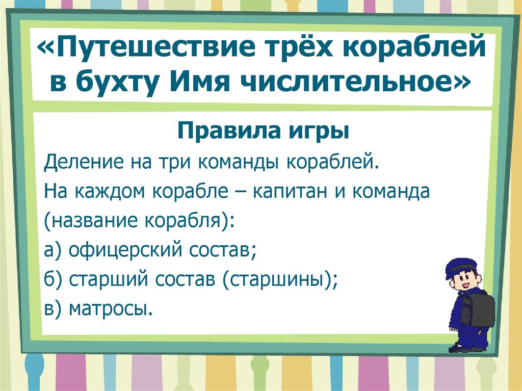 «Путешествие трёх кораблейв бухту Имя числительное»