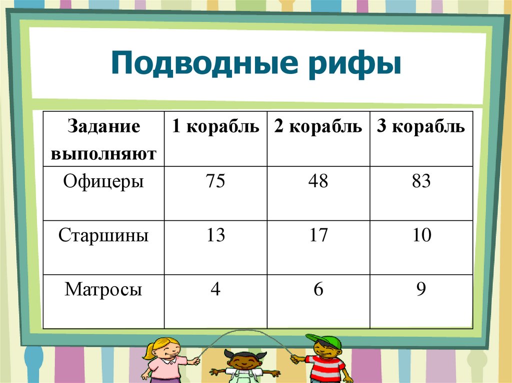 Подводные рифыЗадание