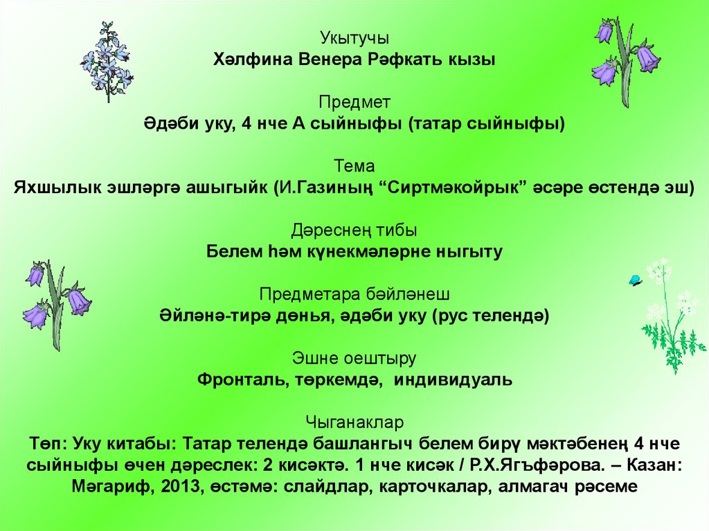Әдәби уку, 4 нче А сыйныфы (татар сыйныфы)