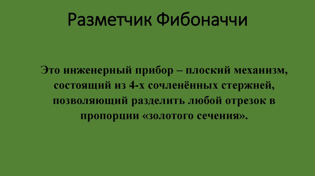 Разметчик ФибоначчиЭто инженерный прибор – плоский механизм,
