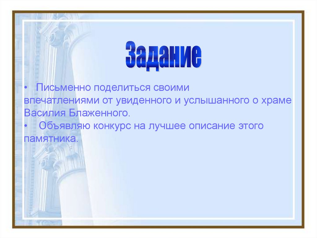 • Письменно поделиться своимивпечатлениями от увиденного и услышанного о храме