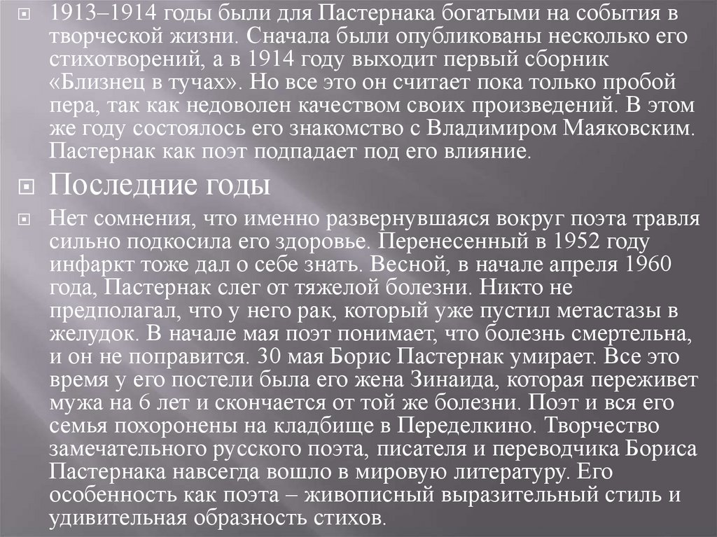 1913–1914 годы были для Пастернака богатыми на события втворческой жизни. Сначала были опубликованы несколько его