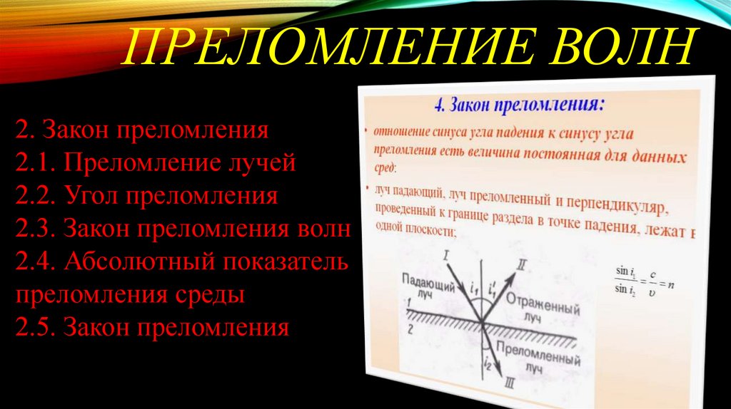 ПРЕЛОМЛЕНИЕ ВОЛН2. Закон преломления