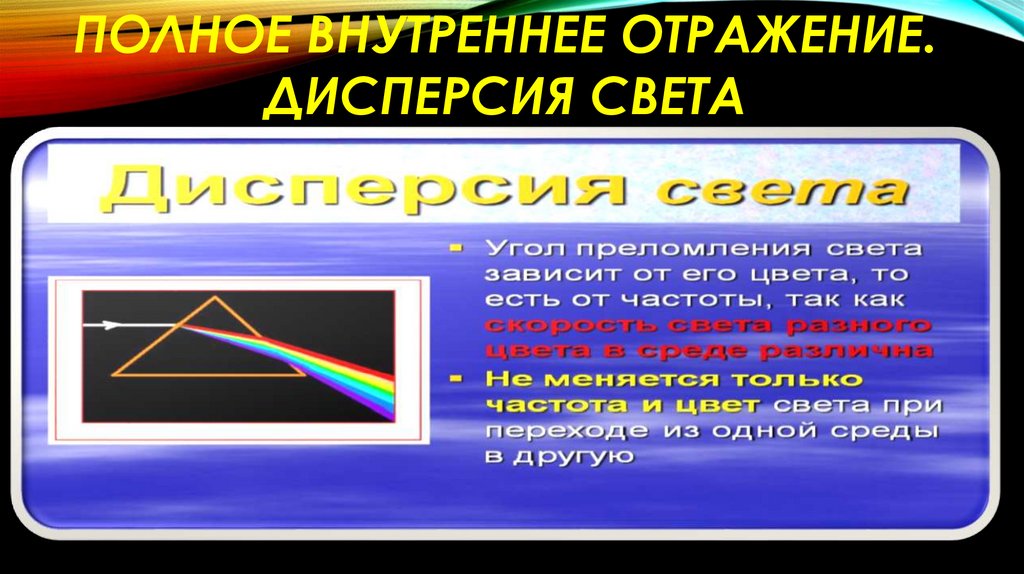 ПОЛНОЕ ВНУТРЕННЕЕ ОТРАЖЕНИЕ.ДИСПЕРСИЯ СВЕТА