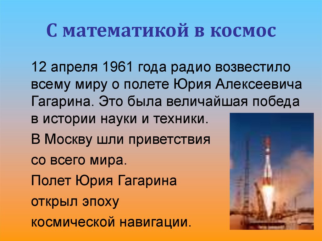 12 апреля 1961 года радио возвестиловсему миру о полете Юрия Алексеевича