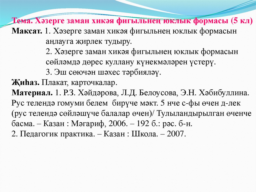 Тема. Хәзерге заман хикәя фигыльнең юклык формасы (5 кл)Максат. 1. Хәзерге заман хикәя фигыльнең юклык формасын