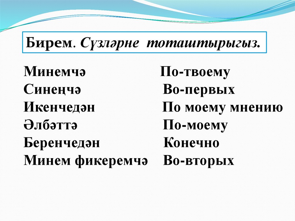 Бирем. Сүзләрне тоташтырыгыз.Минемчә