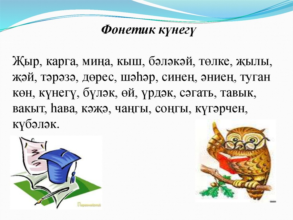 Фонетик күнегүҖыр, карга, миңа, кыш, бәләкәй, төлке, җылы,
