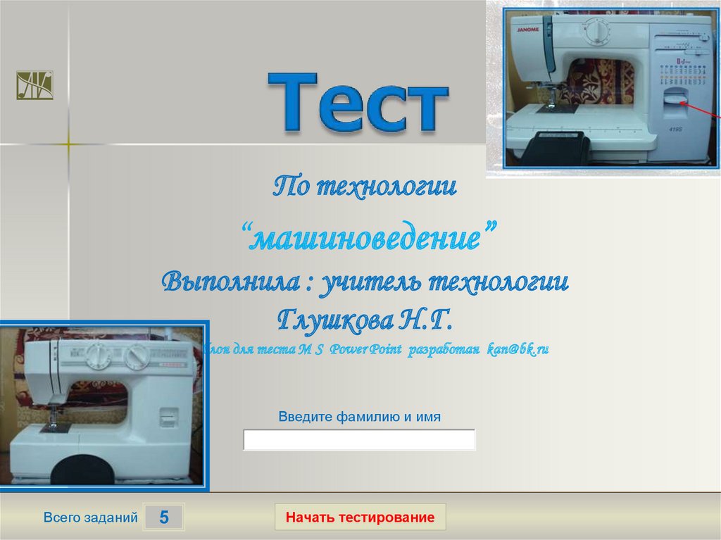 Шаблон для теста М S Power Point разработан kan@bk.ru