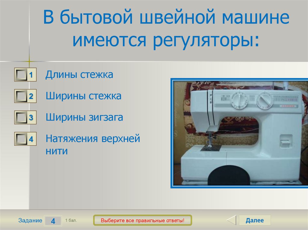 В бытовой швейной машинеимеются регуляторы: