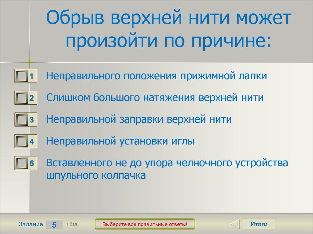 Неправильной заправки верхней нити