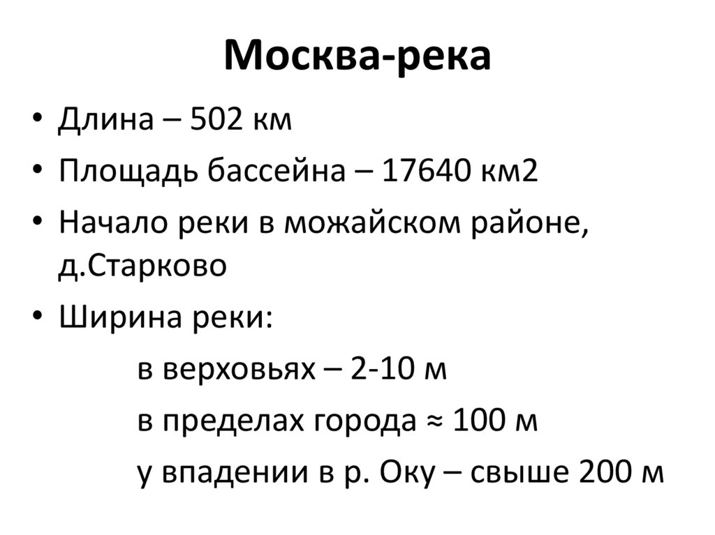Москва-река• Длина – 502 км