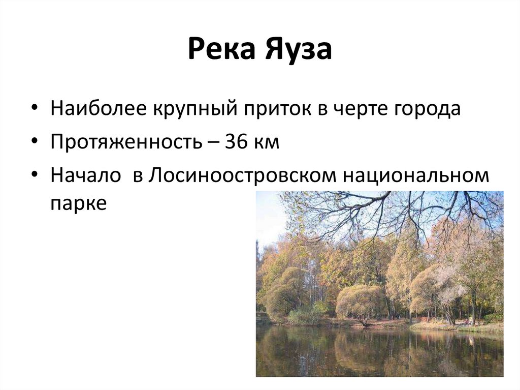 Река Яуза• Наиболее крупный приток в черте города