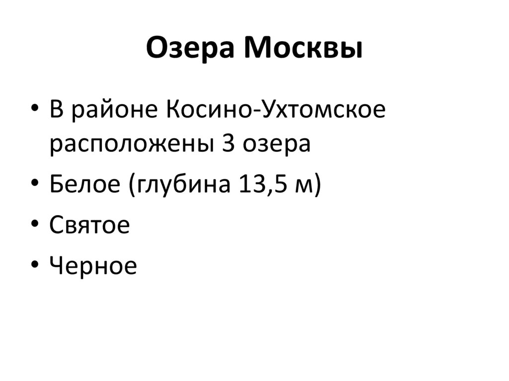 Озера Москвы• В районе Косино-Ухтомское
