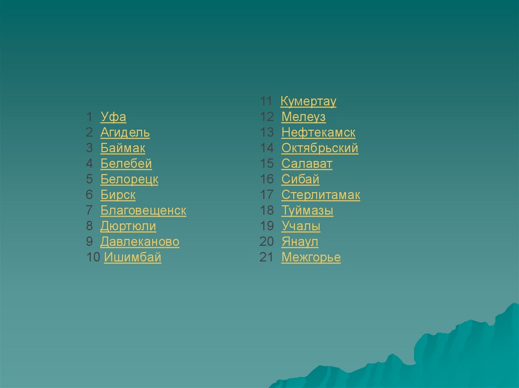 1) Йүрүзән;2) АҒИЗЕЛ;