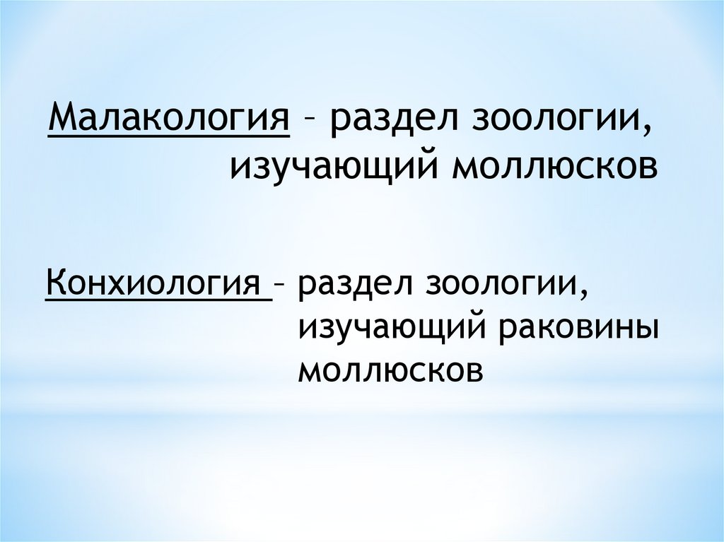 Малакология – раздел зоологии,изучающий моллюсков