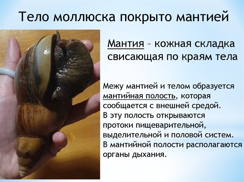 Тело моллюска покрыто мантиейМантия – кожная складка