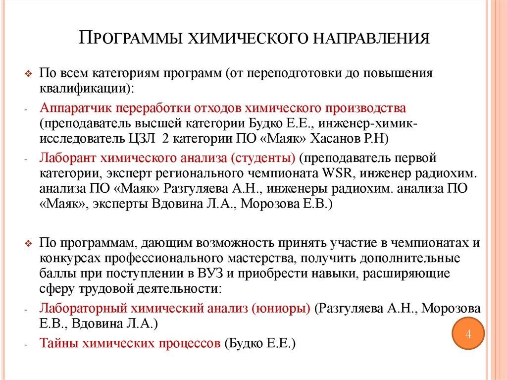 ПРОГРАММЫ ХИМИЧЕСКОГО НАПРАВЛЕНИЯ-